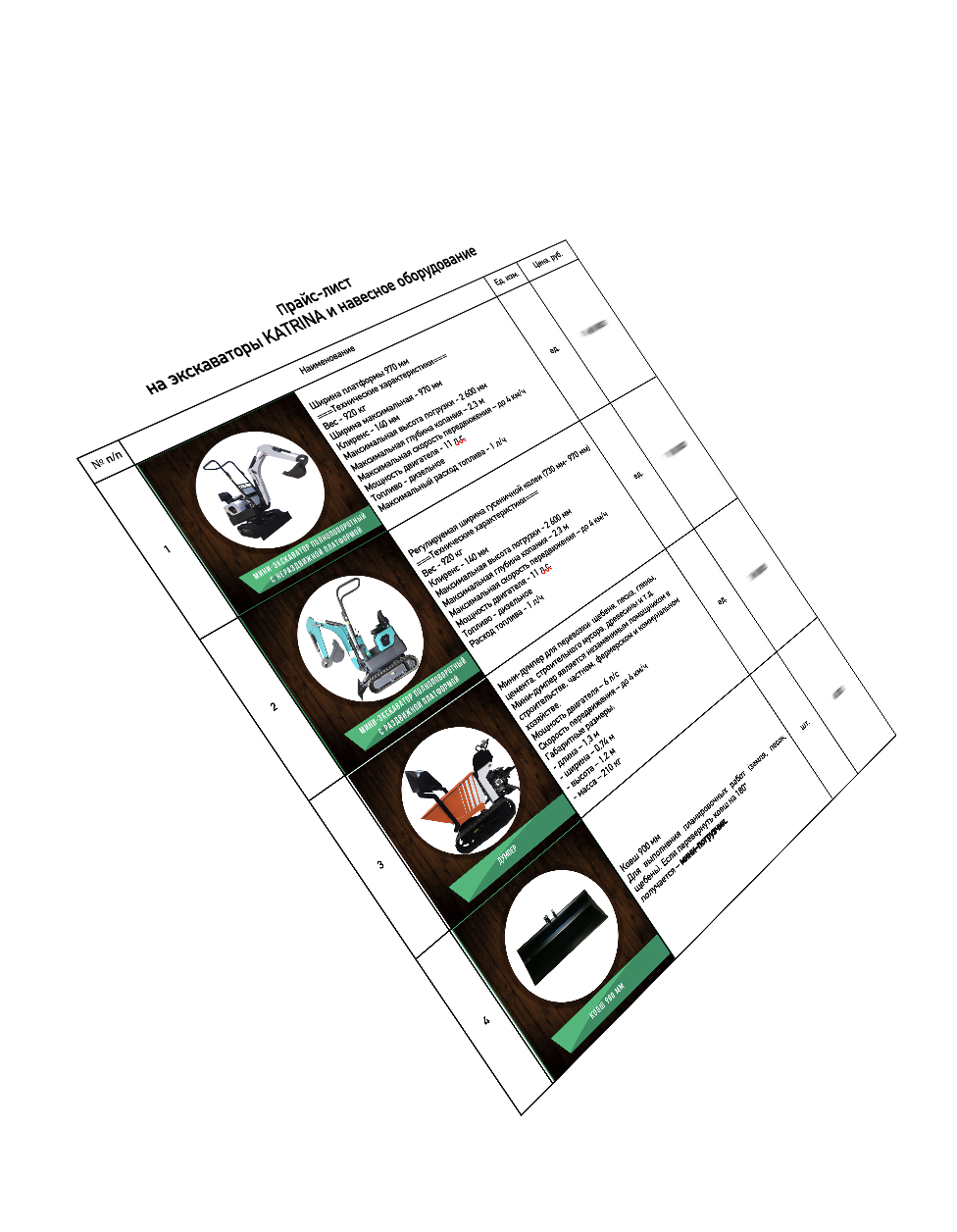 Стоимость мини-экскаватора с навесным оборудованием в 2-х ценовых вариантах и сроки поставки